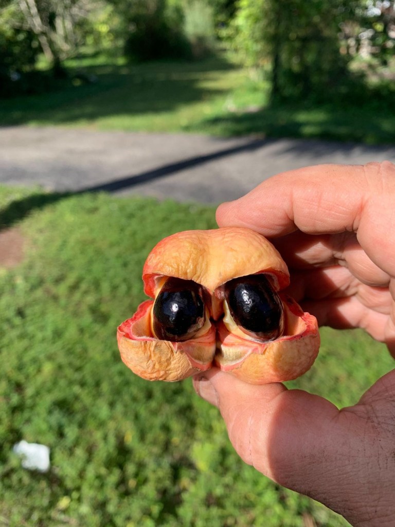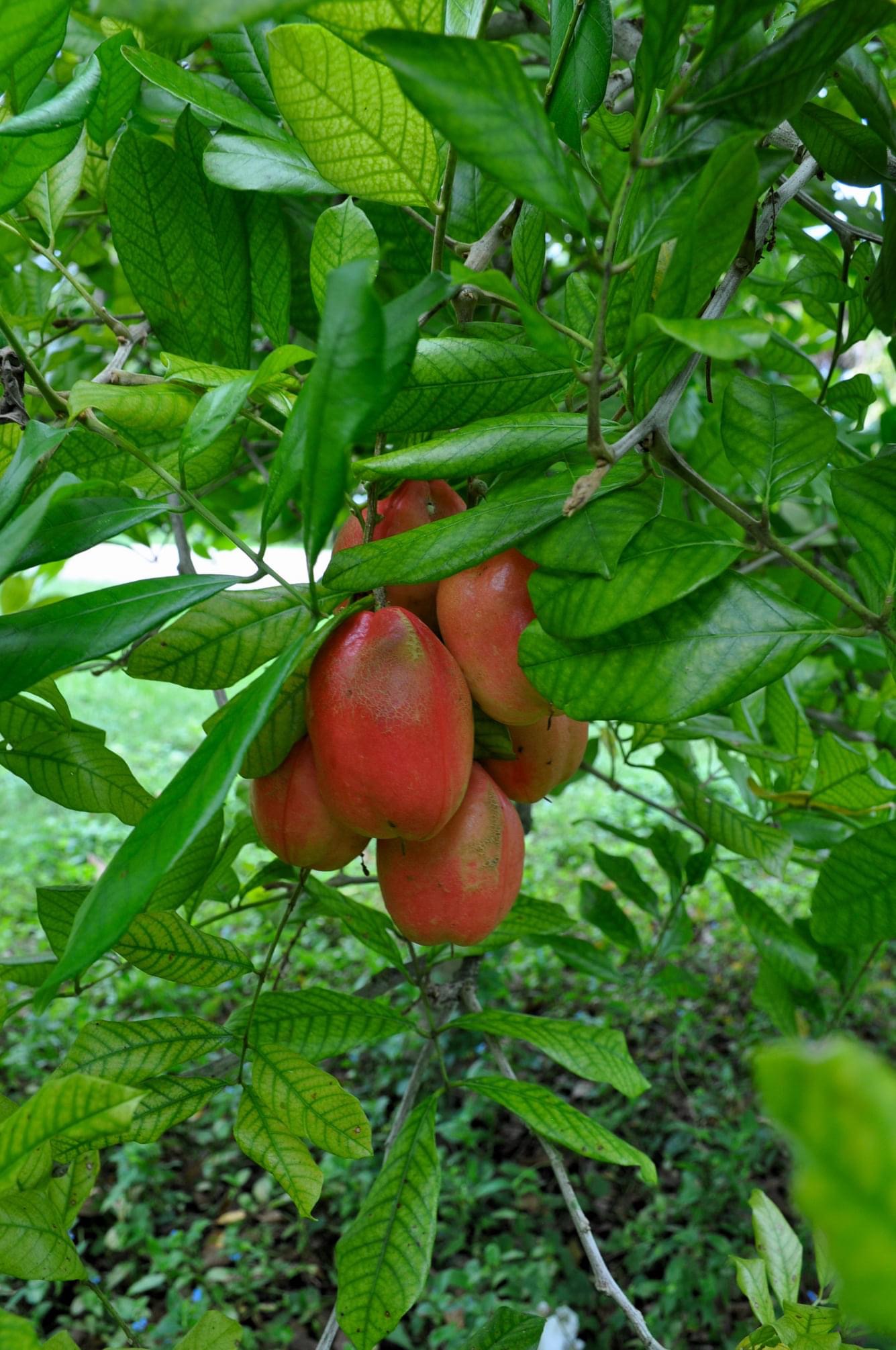 There are several Ackee trees growing in the Food Forest which produce prolific amounts of the fruit. It grows on a tropical evergreen tree that’s native to West Africa, and also goes by the names achee, akee, and ackee apple.