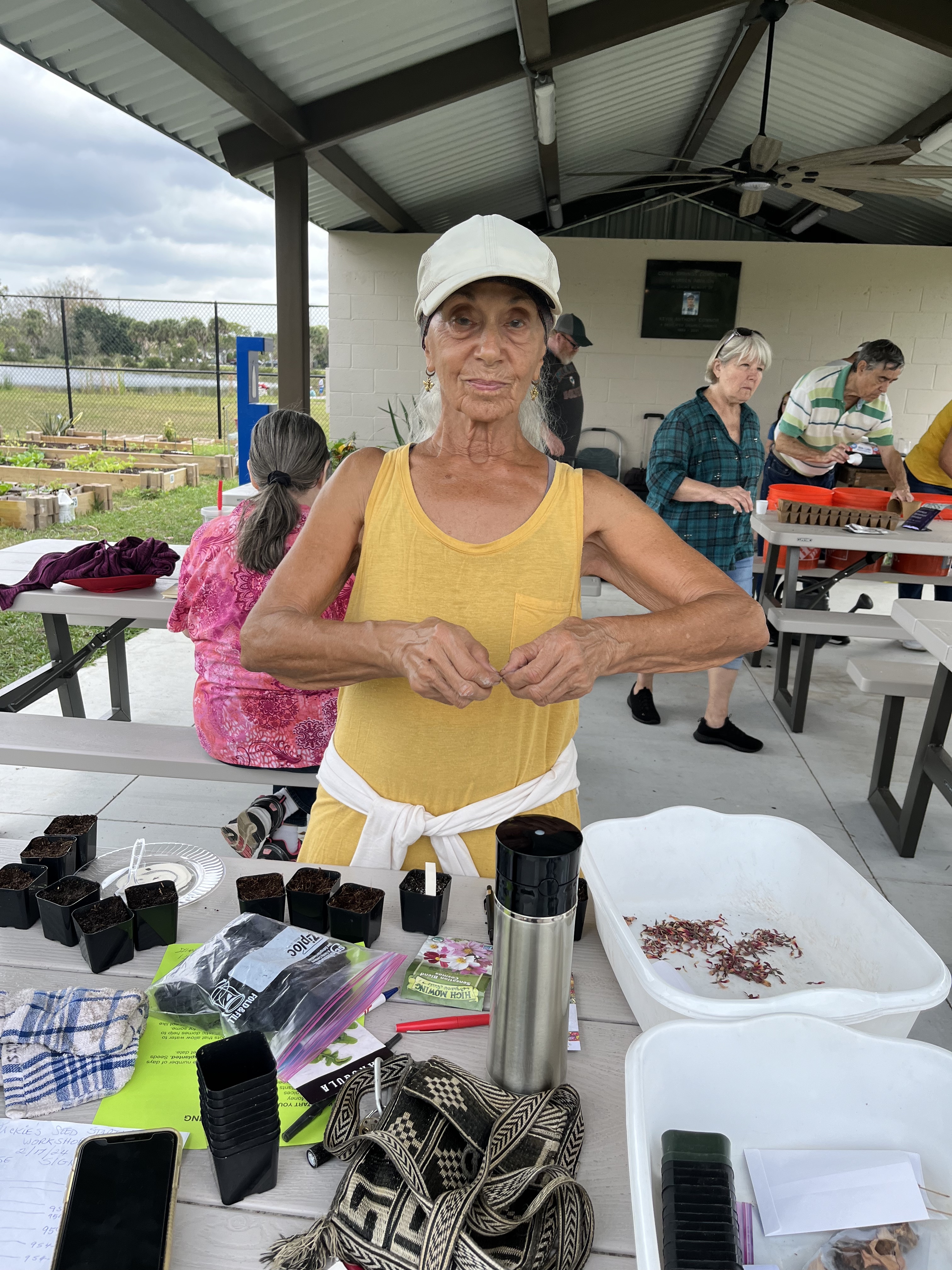 There is an old proverb that says, “All the flowers of all the tomorrows are in the seeds of today.” Gardeners gathered under the pavilion on Saturday, February 17th to learn the ins and outs of starting plants from seeds. It was a great turnout and after the class, participants started plants from seed for the Coral Springs Earth Fest in April, and for their own garden. Some of the plants they started were herbs-oregano, basil, parsley and garlic chives. Some were flowers, such as poppies, marigolds and cosmos and others were vegetables – Everglades tomatoes, okra, and Seminole pumpkin. There were smiles all around as everyone enjoyed the morning in the garden.