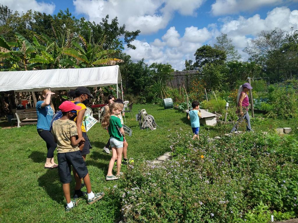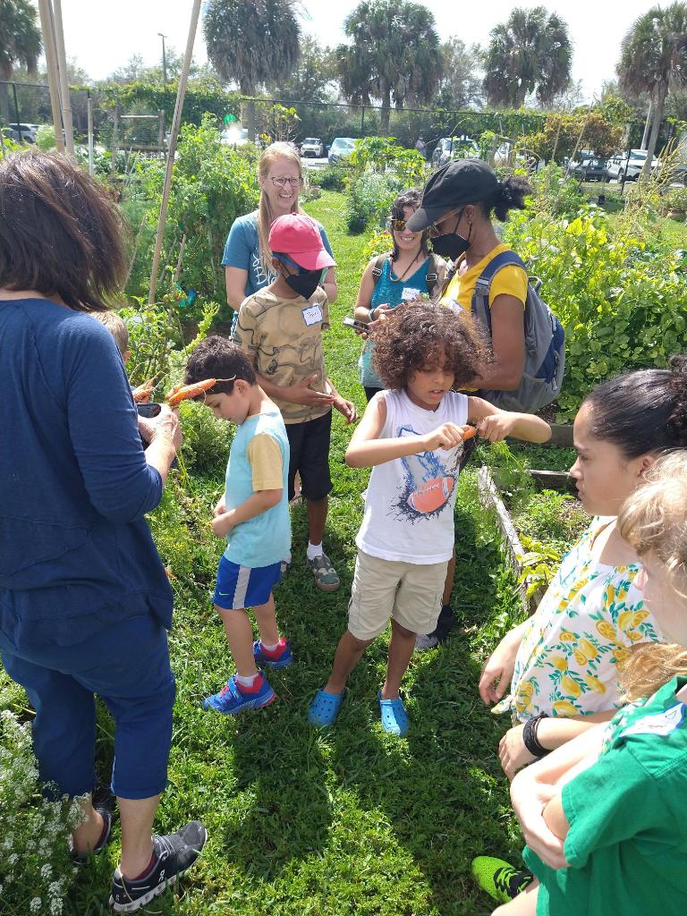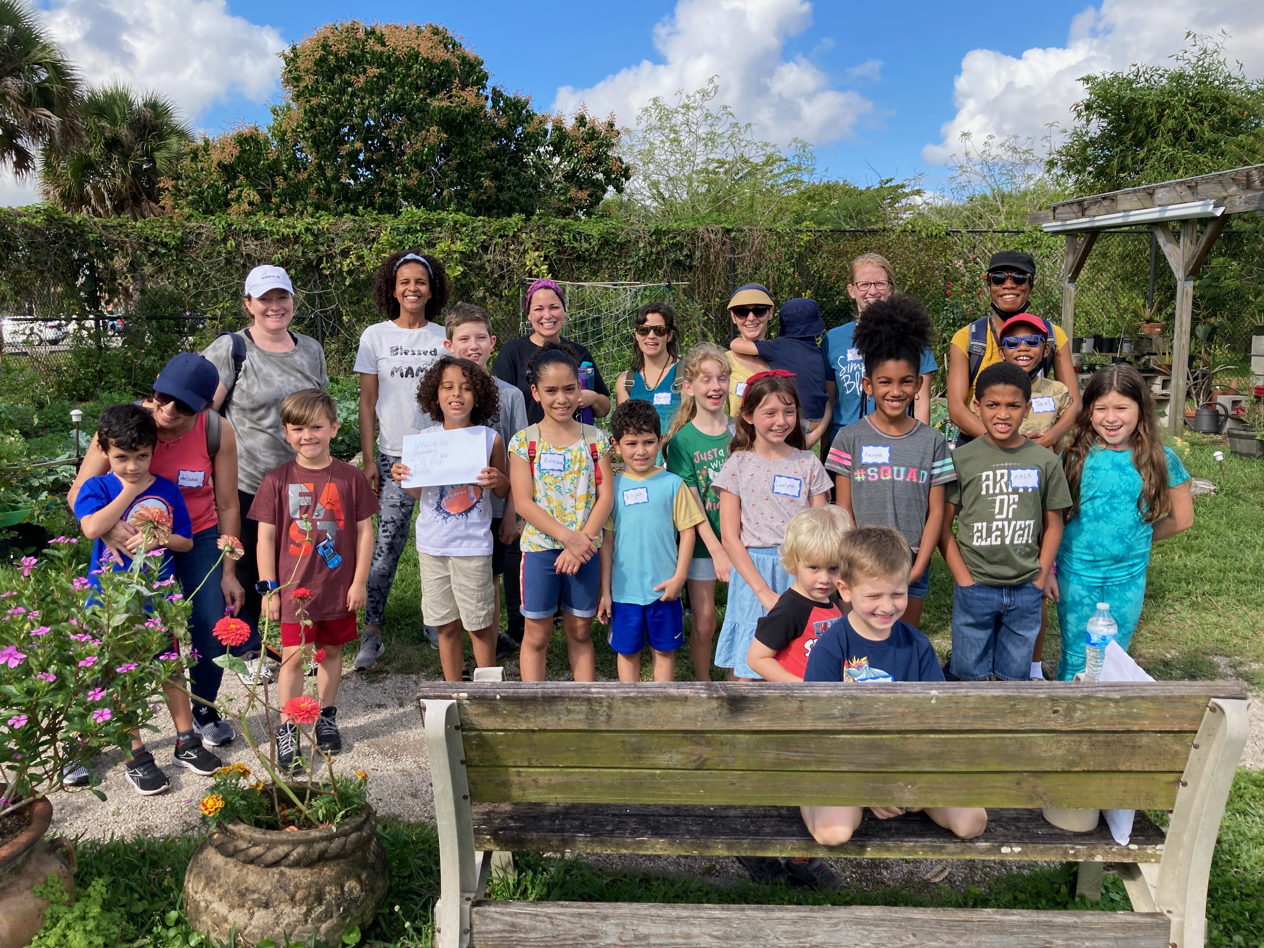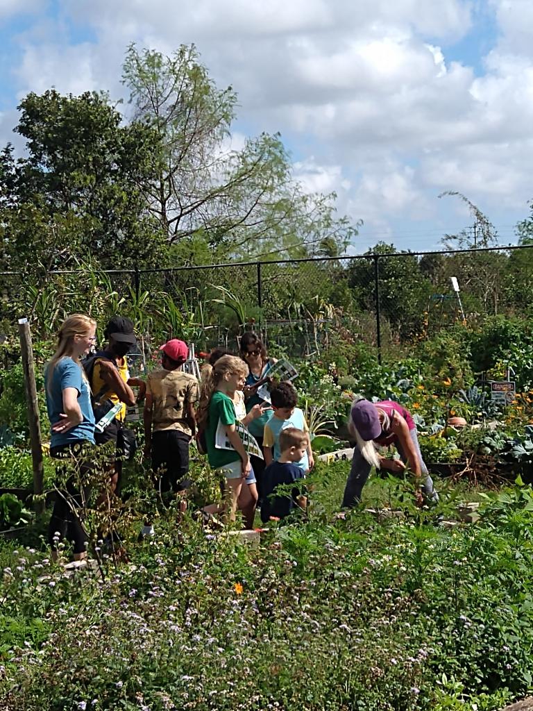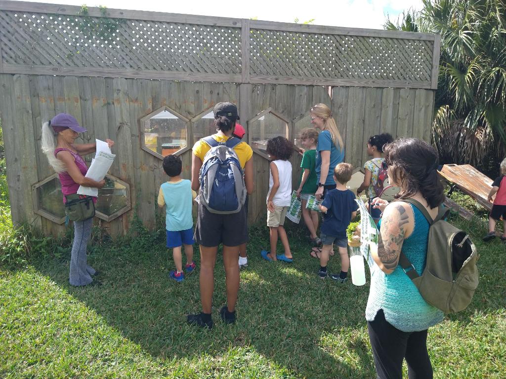 Satya Rudin walked the children through the the section of the garden dedicated to pollinators – butterflies and bees. The students saw monarch caterpillars on milk weed, atala caterpillars on coontie and observed bees in the apiary. They learned about the importance of pollinators in a garden. Each child was given a butterfly identification guide to take home.