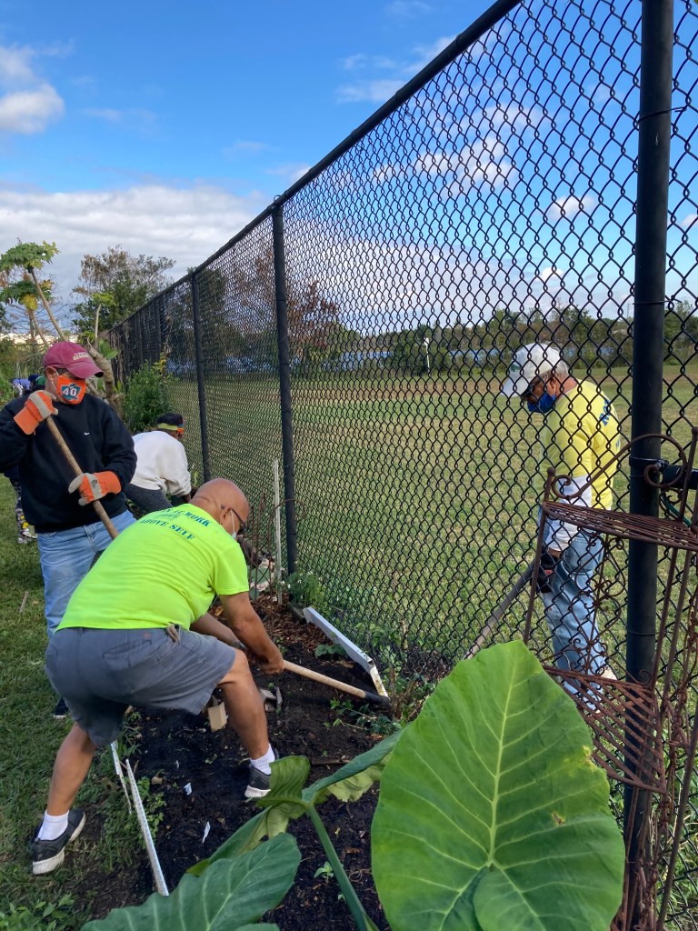 Incredibly beautiful weather and amazing gardeners made this a fantastic beginning to the new year! Volunteers planted Muhly grass and beauty berry in the food forest, while others tackled weeds in the garden. Rebuilding and moving the canopy was accomplished quickly with everyone’s help. They did all this while wearing masks and social distancing. We want to thank the Rotary Club members – Sal, Mickey and Scott – who came to volunteer, as well as Renata and Hilamar, Jackie (Renata’s friend), Lorin and his daughter, Viola and Mimi, Elizabeth, Janice and Kirsten! All contributed to make this a special day.